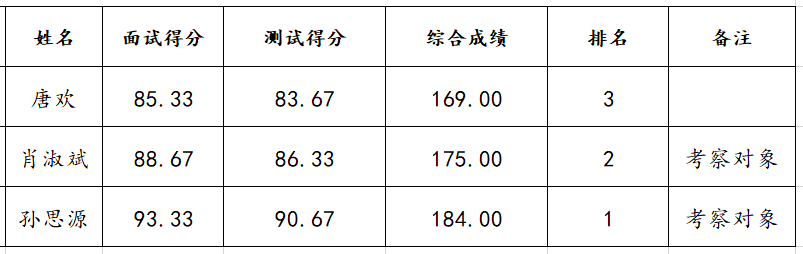 湖南工商大学大数据与互联网创新研究院非事业编智能制造实验室管理员招聘考试工作已经结束,现将综合成绩公示如下: