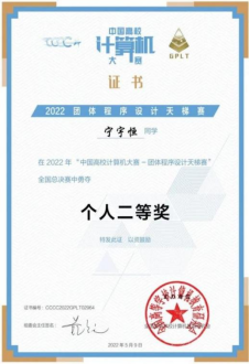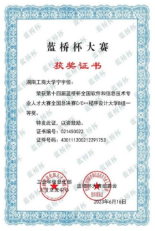 在保持扎实的理论学习功底之余,宁宇恒注重理论与实践相结合,展现出卓越的科创实力。他在蓝桥杯C/C++程序设计大赛、机器人开发大赛、算法设计与编程挑战赛等比赛中脱颖而出,荣获6项国家级、5项省级及多项校级学科竞赛奖励,充分体现他较强的实践能力和创新水平。宁宇恒同学深刻意识到,如果只学习课内的知识,没有自己的规划,只会浑浑噩噩的过完大学四年。而如果学习一门特长,就能够在当前不断变化的大环境下中脱颖而出,为以后的学习、工作乃至生活打下坚实的基础。