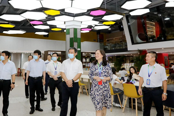 何报翔副省长一行实地参观了我校岭南校区创新创业创意园不多堂艺术馆、创意文化馆、创意中心、智创空间、创客工场、创想长廊,经管综合楼楚枫书院、体育活动中心、求是书院,科技楼国家基础科学中心、数据智能与智慧社会国家重点实验室(培育)基地以及省级重点实验室和工程研究中心等办学场所,详细询问了解了我校在人才培养、学科专业建设、科学研究及成果转化、创新创业及项目转化、校园文化建设等方面的办学情况。