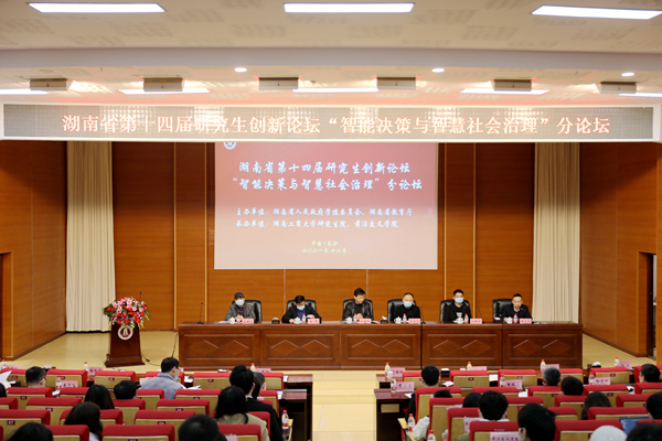 12月19日,由湖南省人民政府学位委员会、湖南省教育厅主办,湖南工商大学研究生院、前沿交叉学院承办的湖南省第十四届研究生创新论坛 “智能决策与智慧社会治理 ”分论坛在我校本部图书馆英才报告厅开幕。我校副校长刘国权出席。我校相关二级单位负责人参加。中南大学王宗润教授、王勇教授,国防科技大学刘新旺教授,我校徐雪松教授作为特邀专家参加。分论坛论文获奖研究生和导师代表及我校研究生和导师代表以线上线下的形式与会。开幕式由我校前沿交叉学院院长徐选华主持。