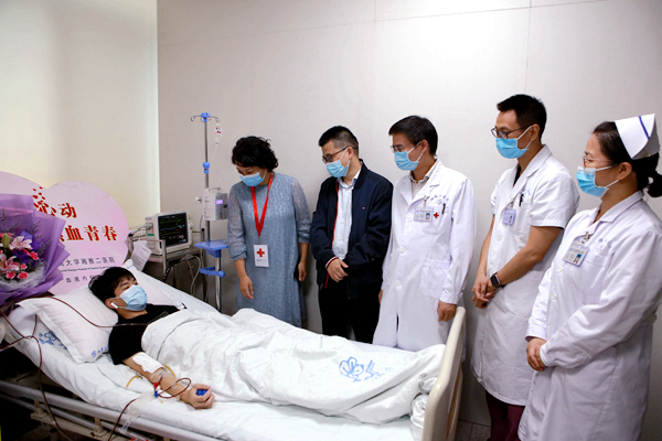 在校党委书记、我院名誉院长陈晓红院士的关心和嘱托下,我院党委副书记兼副院长任剑带领学院师生代表赴湘雅二医院看望慰问雷小东,并送上了慰问品和慰问金。湖南省红十字会副会长代贺龙、骨髓库主任张赞和长沙市、永州市蓝山县红十字会负责人,湘雅二医院血液科负责人等陪同看望。