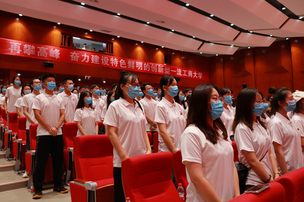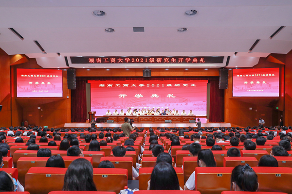 乘风新时代,追梦湖工商。9月19日上午,学校在经管综合楼隆重举行2021级研究生开学典礼。校党委书记陈晓红院士、校长黄昕、校党委副书记肖小芹等全体校领导、资深教授、党委委员出席典礼。各二级培养单位党政负责人、相关职能部门负责人,各二级培养单位研究生教育分管副院长和党委副书记、研究生干事、研究生班主任及全体2021级研究生参加。典礼由黄昕校长主持。