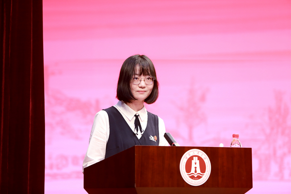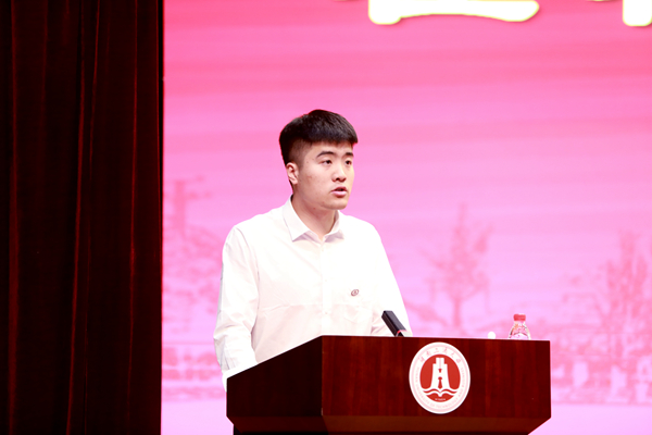 2021级工商管理专业研究生杨柠屹同学和2019级管理科学与工程专业研究生孟凯同学作为新老生代表发言。杨柠屹同学表达了对湖工商美好校园生活的向往,她表示,学校正朝着 “三进三高 ”的目标大步迈进,自己也将以自强不息为骨、以家国天下为魂,为国家民族扛起一个未来,为湖工商争光添彩。孟凯同学表示,湖工商给了我们展翅翱翔的广阔空间,现在我们正值人生中最美好的阶段,正值拼搏、奋斗的黄金时期,将用理想和信念的明灯照亮前行的路,用奉献和奋斗的成绩展现湖工商学子的风采。