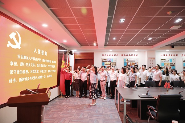 会上,校党委书记陈晓红院士首先带领全体党员面向党旗,举起右拳,重温入党誓词,铿锵有力的宣誓声让每一位党员同志深受感染。陈书记号召大家要将入党誓词铭记于心,要将革命精神发扬光大,从党的奋斗历史中汲取前进力量,在奋发有为中践行初心使命,矢志不渝、一往无前。