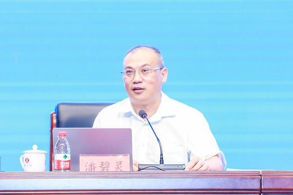 潘碧灵常委强调,要深入贯彻落实习近平生态文明思想,坚持生态兴则文明兴、生态衰则文明衰的深邃历史观,人与自然是生命共同体的科学自然观,绿水青山就是金山银山的绿色发展观,良好生态环境是最普惠的民生福祉的基本民生观,统筹山水林田湖草系统治理的整体系统观,实行最严格生态环境保护制度的严密法治观,建设清洁美丽世界的共赢全球观。他还详细介绍了长江经济带生态环境保护相关要求,湖南省 “守护好一江碧水 ”的实践,例举了生态农业、生态工业、生态服务业、产业融合发展、创新发展、区域转型升级、生态示范、和谐发展等方面的优秀成功案例。