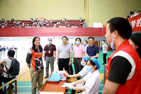 根据上级部门关于新冠疫苗接种工作的统一安排,5月11日至13日,学校全面开展师生新冠疫苗接种工作。校党委书记陈晓红院士、副校长易棉阳到现场检查指导工作。