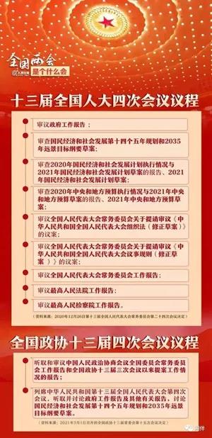 十三届全国人大四次会议、全国政协十三届四次会议即将在北京召开。此次全国两会,是在习近平总书记庄严宣告我国脱贫攻坚战取得全面胜利和新冠肺炎疫情防控常态化的背景下召开的,举世瞩目、举国关注,意义重大。目前会议主要议程已经公布了。