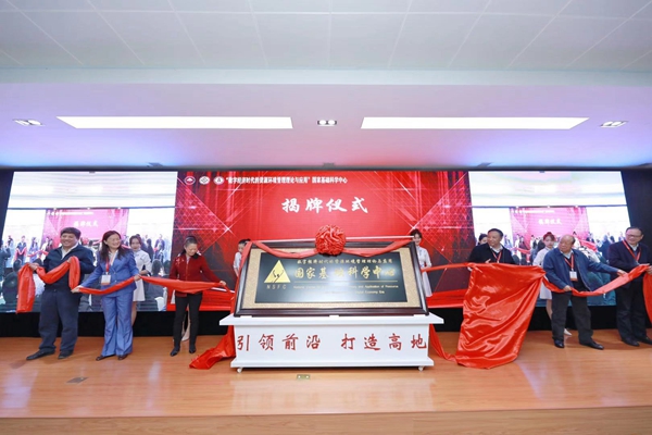 在与会领导、院士专家的共同见证下,侯增谦院士、胡文瑞院士、杨列勋副主任、田红旗院士、陈晓红院士、刘合院士为 “数字经济时代的资源环境管理理论与应用 ”国家基础科学中心揭牌。随后,朱忠明副省长、侯增谦院士、胡文瑞院士、张大方副主席、田红旗院士、陈晓红院士、欧阳晓平院士、童旭东厅长、刘合院士、杨列勋副主任分别向受聘为国家基础科学中心学术委员会、管理委员会、首席科学家、咨询专家的中心成员颁发了聘书。