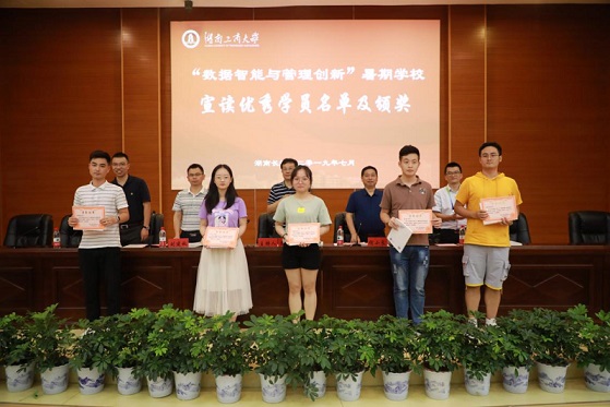 课程结束后,由余绍黔教授主持本届暑期学校的结业仪式。首先,余绍黔教授作了总结发言。接着,本届暑期学校为每个学员颁发了结业证书,向袁婕、盘涛、文泽雄、刘畅等25名优秀学员们颁发了 “优秀学员 ”证书并合影留念,会计学院袁婕作为优秀学员代表作了典型发言。最后,谢小良教授、刘建秋教授、李坚飞副教授分别讲话,向全体学员表达了诚挚祝愿,鼓励学员们积极报考湖南工商大学这所充满蓬勃生机的一本院校的研究生。