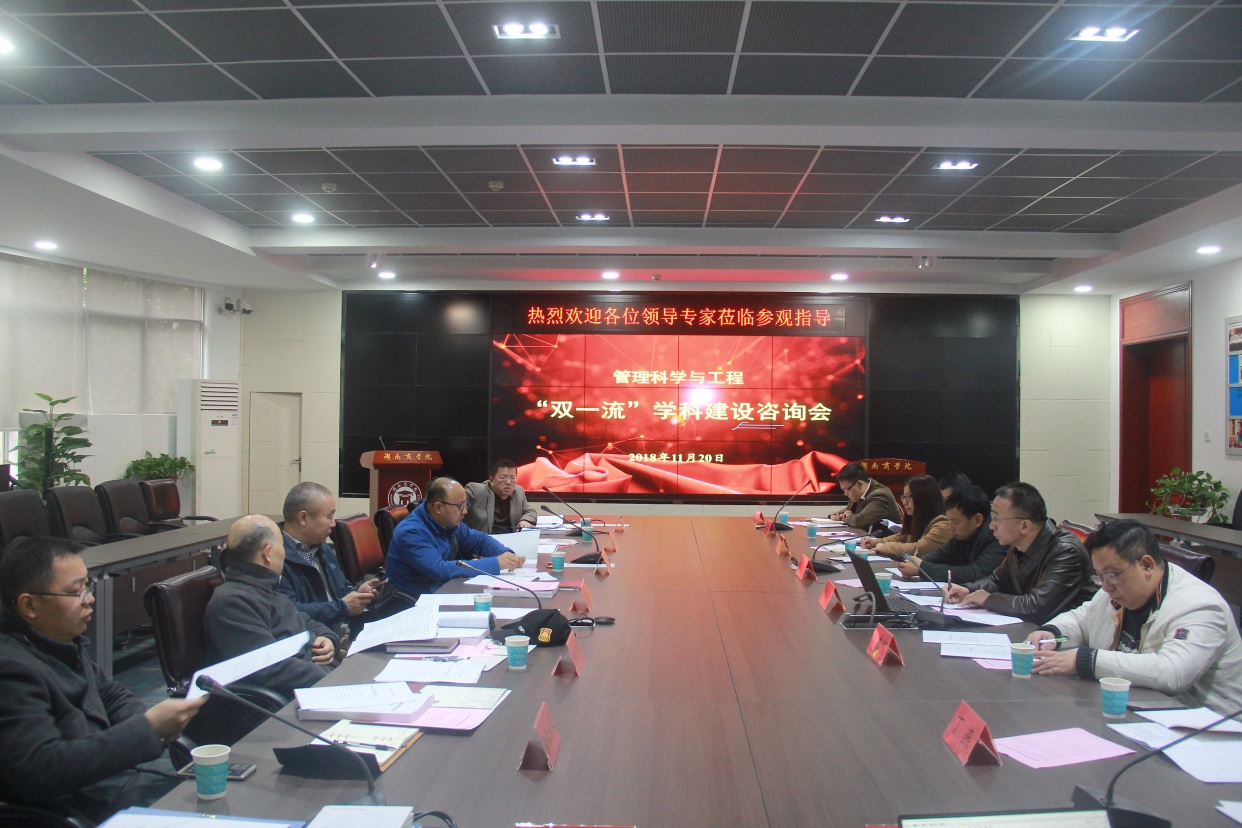 11月20日,管理科学与工程学科在科技楼大数据分析实验室召开 “双一流 ”建设咨询会,会议邀请了国防科技大学李国喜教授、中南大学信息科学与工程学院肖健宇教授、中南大学商学院胡东滨教授、长沙理工大学傅明教授、湖南星投信息服务有限公司研究院丁燕副院长等五位专家学者,对我校管理科学与工程学科的 “双一流 ”建设工作进行专题指导。方向带头人大数据与互联网创新研究院执行副院长余绍黔、移动商务智能湖南省重点实验室执行副主任胡春华及部分团队骨干成员参加了研讨会,会议由胡春华主持。