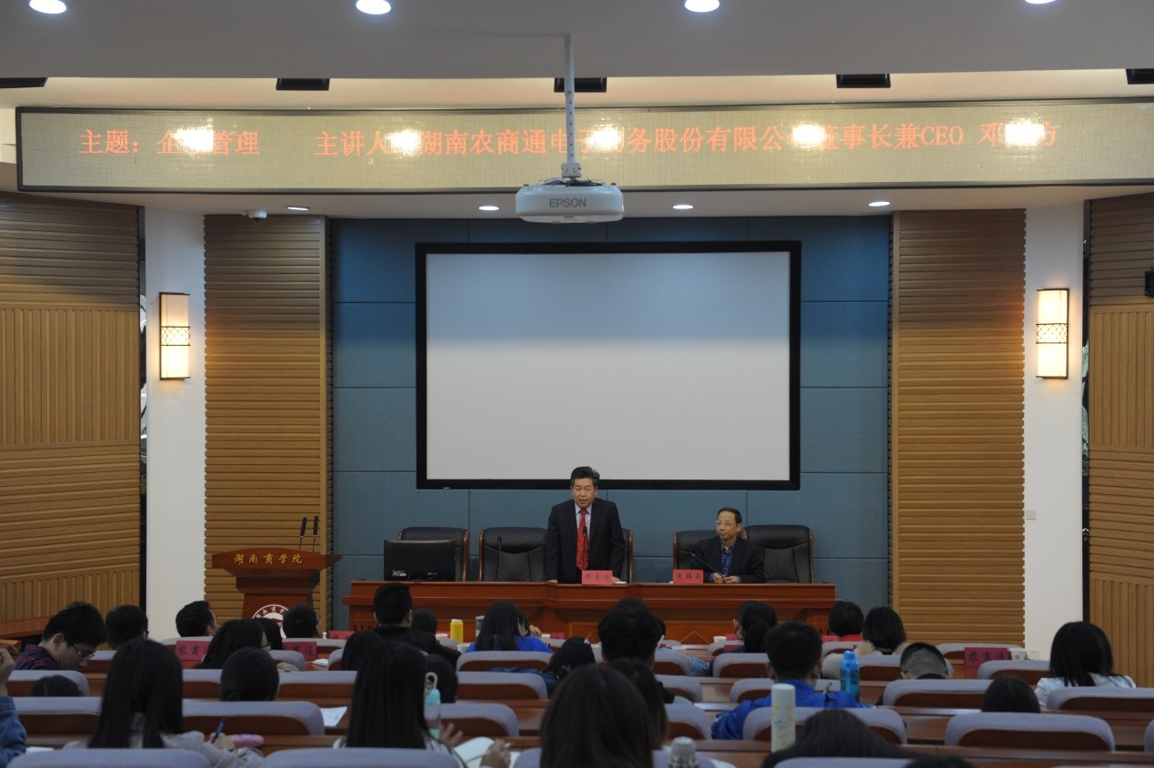 11月9日下午,湖南农商通电子商务股份有限公司董事长兼CEO邓南方应邀来我校主讲 “麓山校友、企业家论坛 ”第八十五期,主题为 “企业管理 ”。讲座由研究生院院长周鲜成教授主持。农商通管理层、研究院生院、资产管理处、后勤处、大数据与互联网创新研究院、工商管理学院、计算机与信息工程学院部分师生到场聆听。