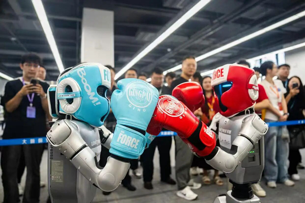 在机器人体验中心展区,湘江实验室展示了“湘江智伴”具身智能服务机器人、“湘江智脑”主动意念康复手套、格斗机器人、机器人复杂操作模仿学习平台等内容,与参展观众交流互动,展现出高超水准。