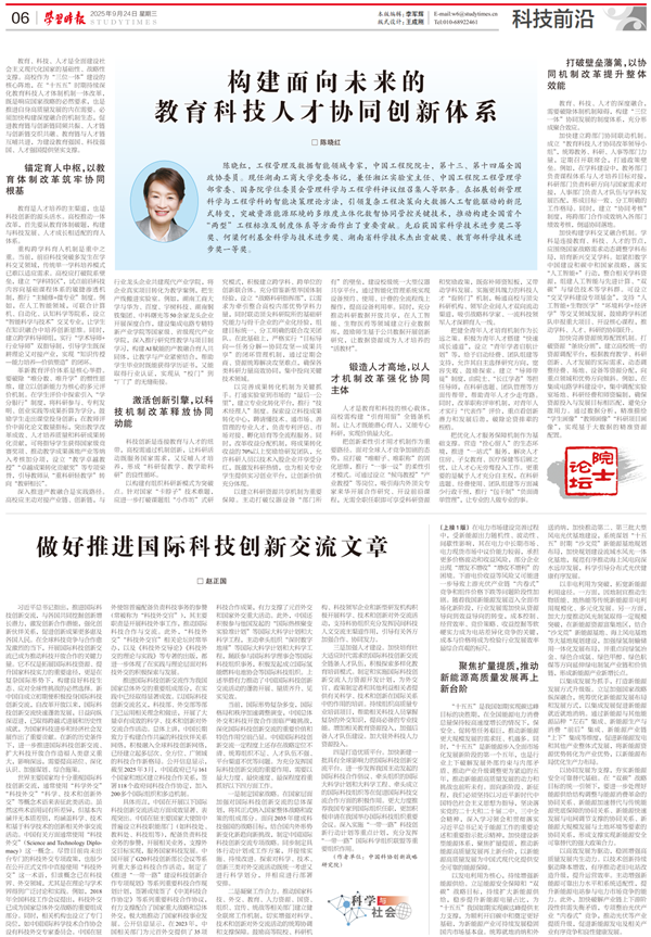 教育、科技、人才的深度融合,需要破除体制机制障碍,构建“三位一体”协同发展的制度体系,充分形成聚合效应。