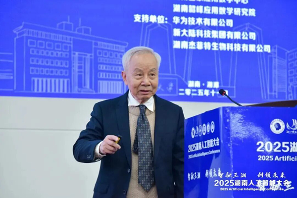 蔡自兴教授在致辞中回顾了中国人工智能学科的四十年发展历程,并分享了自己在构建人工智能学科体系与教材建设方面的最新成果。他特别强调湖南是中国人工智能发展的“福地”与“先锋”,呼吁在新时代继承敢为人先的精神,为智能强国建设做出更大贡献。最后,他衷心祝贺大会圆满成功,并祝愿与会代表在人工智能领域取得新的突破。