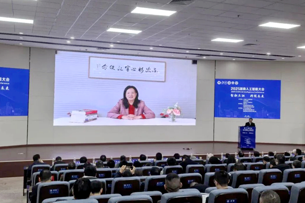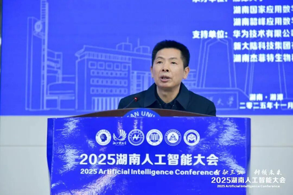 陈晓红院士在致辞中首先肯定了学会联动各方在2024—2025年取得的显著成绩,包括多家理事单位入选省“人工智能+”重点企业,多项AI应用走进千家万户。她指出,湖南正以算力、算法、算据、算网“四算一体”加速构建人工智能创新生态。她提出未来应聚焦创新攻坚筑牢技术高地、场景赋能拓宽产业空间、生态完善凝聚发展合力三大方向,推动AI与湖南优势产业深度融合。她呼吁各界携手,将湖南建设成为全国一流的人工智能创新策源地、产业集聚地和应用示范地,为中国式现代化湖南新篇章贡献更大力量。